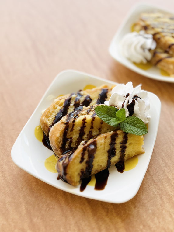 今日のおやつはフレンチトーストを提供しました!(^^)! 三愛荘では、災害時に備えて非常食を5日分保管しており、 賞味期限が近くなったら、普段の食事やおやつとして提供しています! 今回はその非常食用のパンを利用して、 フレンチトーストを作っておやつとして提供しました♪