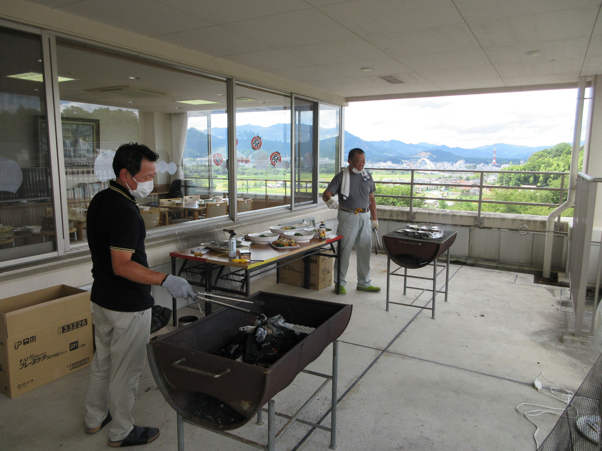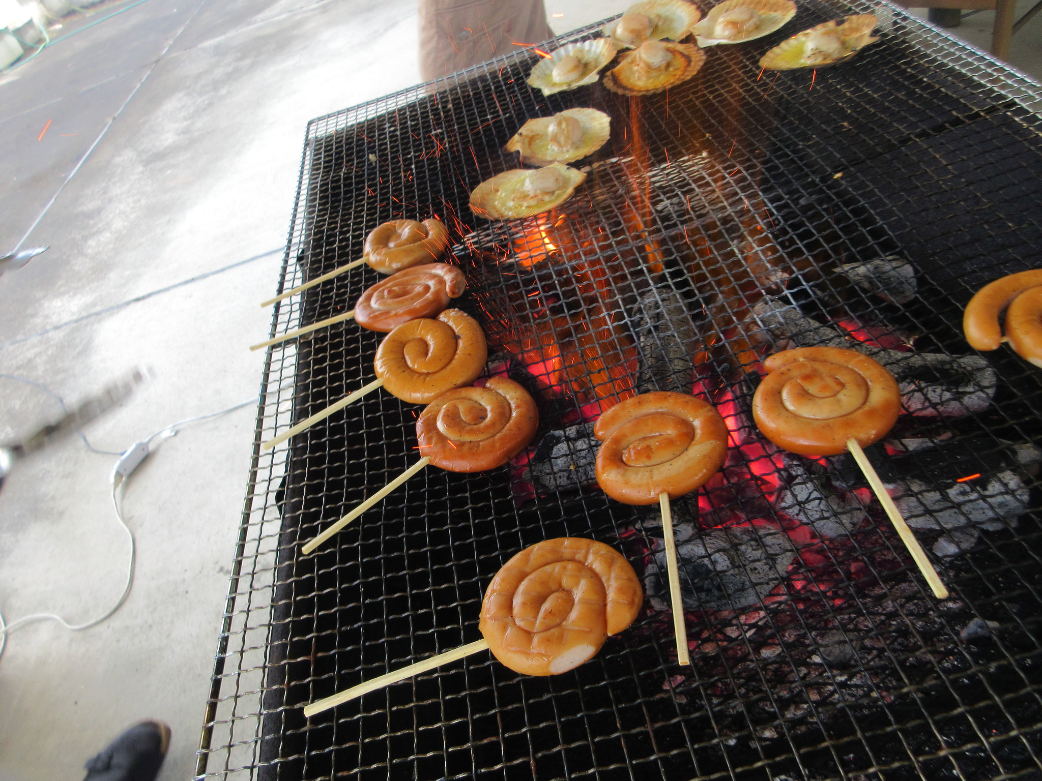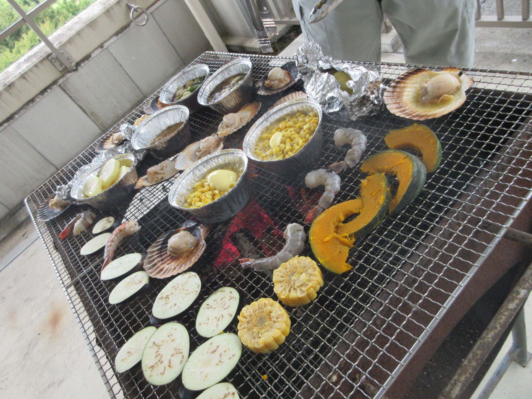 この日も猛暑の為、火おこし&食材を焼いて頂きました