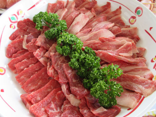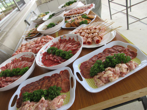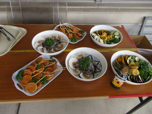 焼肉に野菜、海鮮、うずまきウインナー、コーンバター、